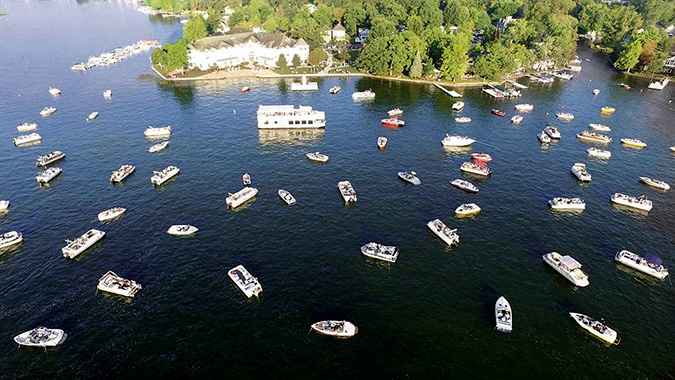 Every Sunday between Memorial Day weekend and Labor Day weekends, the SS Lillypad plays host to the Syracuse/Lake Wawasee Ministrial Association Boat-in Church Service. For over 55 years, local churches take part in the non-denominational service that both enlighten and entertain guests. The Lillypad loads at 7:30 am from The Frog Tavern, departs at 7:45 am sharp. Services start at 8:30 am, conclude at 9 am, and the boat returns at 9:30 am to The Frog Tavern. Guests are first come, first serve until max capacity is reached. Complimentary coffee and danish are offered on the Lillypad. Those who cannot make the Lillypad are welcome to catch services on the shores of Oakwood Resort. Bringing lawn chairs is highly recommended, as is the Oakwood brunch after. Guests can also anchor down by boat or nearby shore.